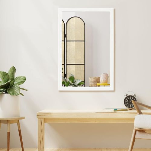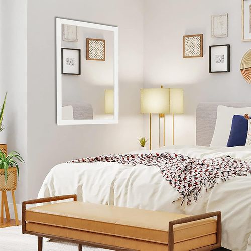 The white frame not only protects the mirror but also adds an element of elegance and sophistication to your living space. Its timeless design is suitable for any room, effortlessly enhancing your home’s aesthetic appeal.